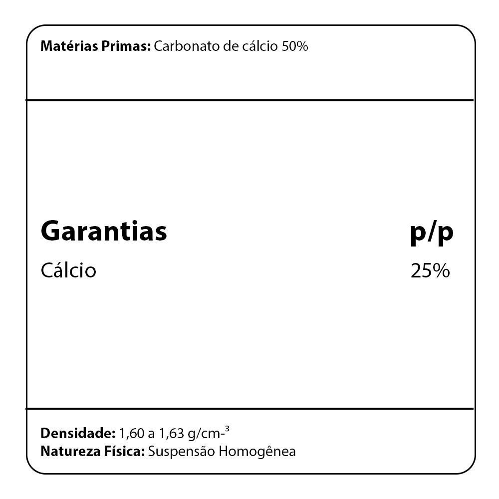 Produto via solo composto por 25% de Carbonato de Cálcio, indicado para suprir a nutrição das plantas. Pode ser utilizado em adubações de cobertura, fertirrigação, drench ou pulverizações foliares, ajudando a corrigir deficiências de cálcio e fortalecendo o desenvolvimento vegetativo.