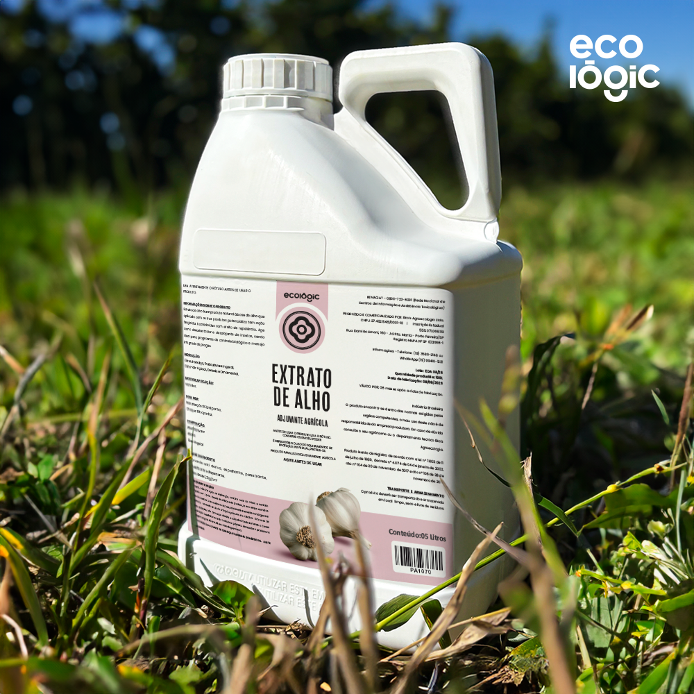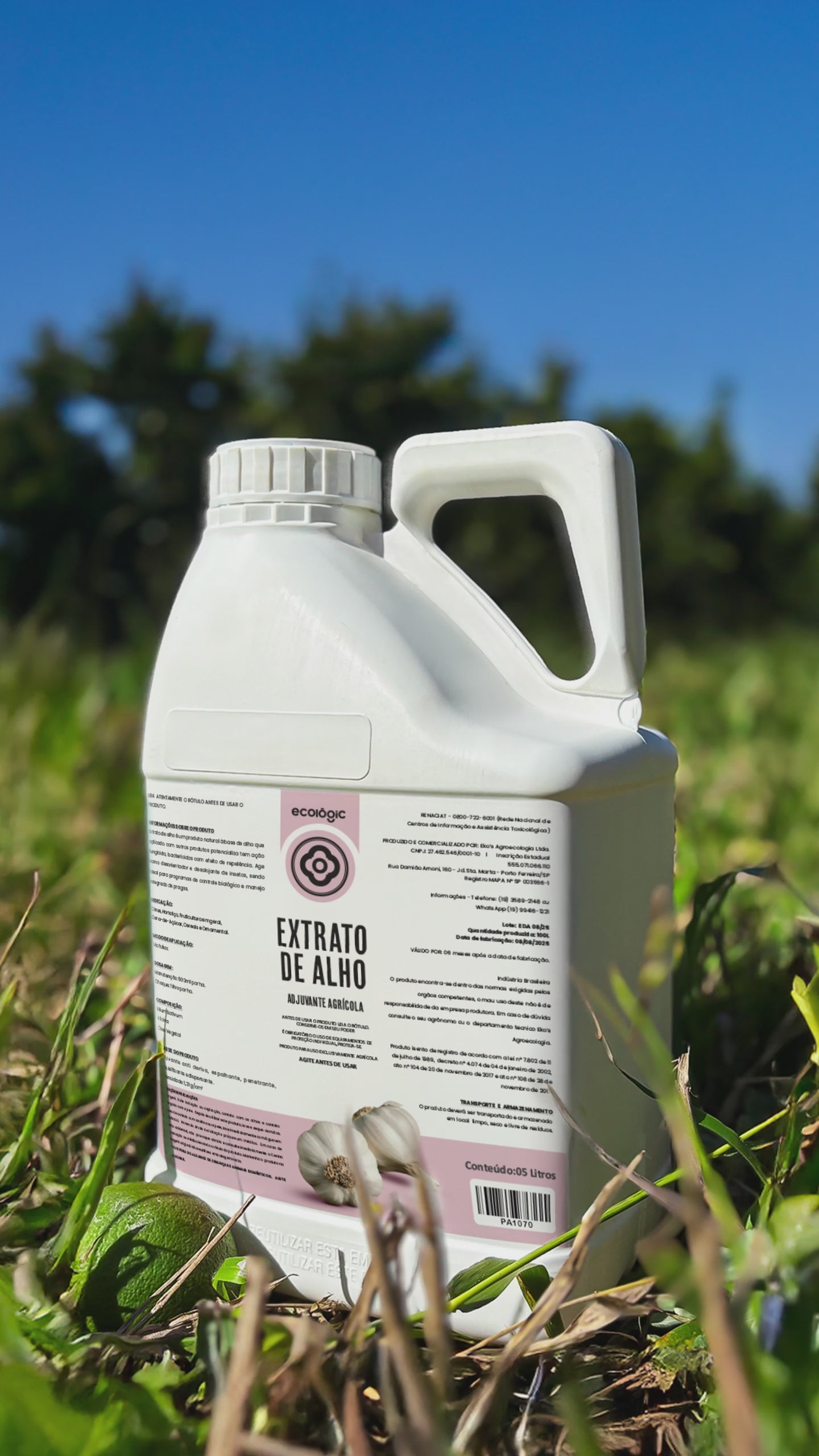 O Extrato de Alho é um produto natural com ação fungicida e bactericida, além de efeito repelente contra insetos. Ele atua desorientando e desalojando pragas, sendo um grande aliado no manejo integrado e no controle biológico. Quando usado em conjunto com outros produtos, potencializa a proteção das plantas e ajuda a manter um cultivo mais saudável e equilibrado.